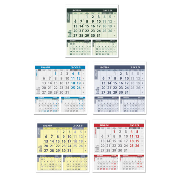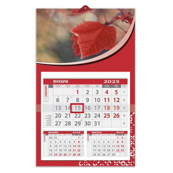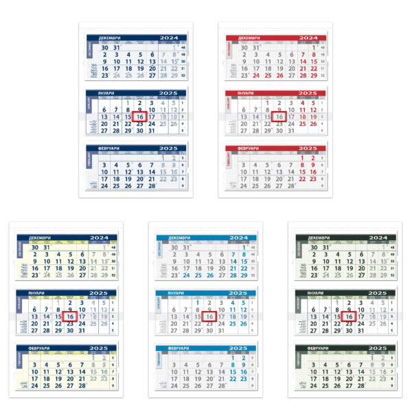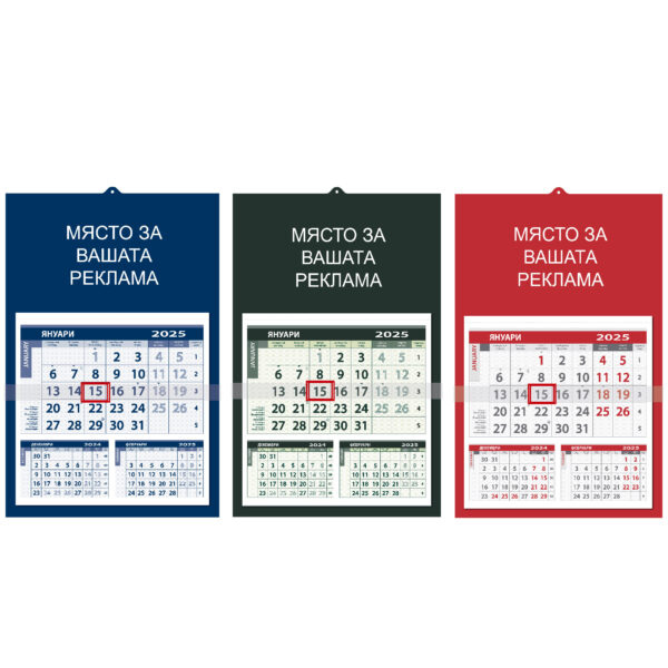 6,25 лв. – 6,70 лв.Трисекционен работен календар с глава и основа от цветен структурен картон