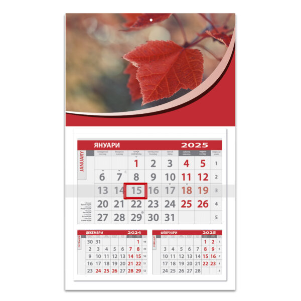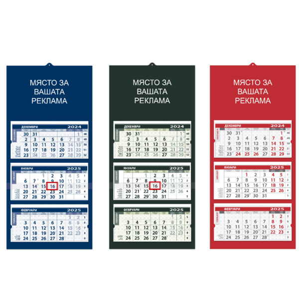 6,37 лв.Трисекционен работен календар с пълноцветен печат на глава