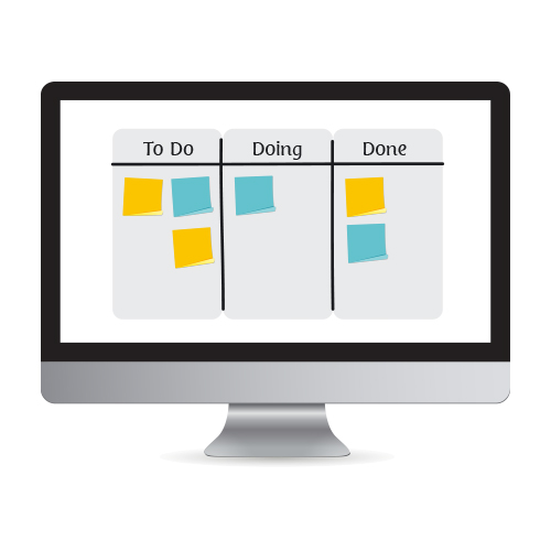Въпреки напредването на технологиите, все още голяма част от компанитие залагат на опростения вариант на създаване на Kanban Board- със самозалепващи листчета.