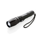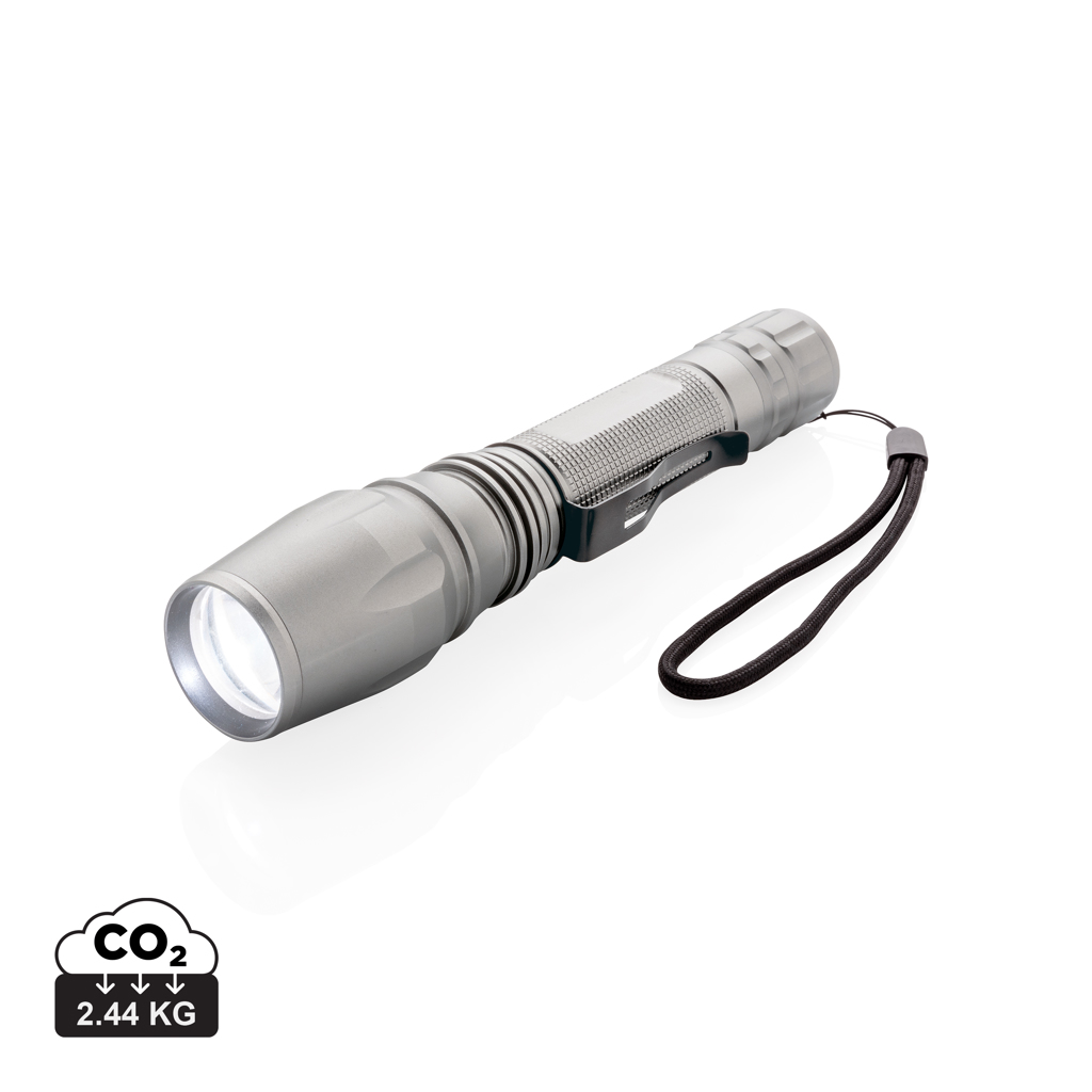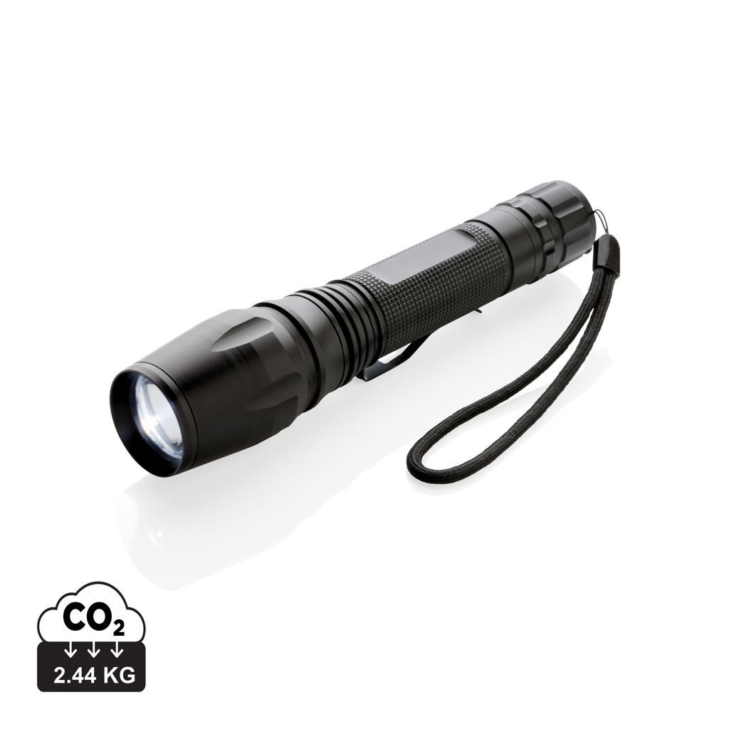 Супер ярко и здраво 10W CREE LED фенерче, което може да се справи дори и с най-трудните условия. Издръжливото алуминиево фенерче е IPX 4 водоустойчиво и удароустойчиво до падане от 1 метър. Лъчът на фенерчето може да се регулира за фокусиране или за осветяване на по-голяма площ. С щипка за колан за носене на фенерчето. 250 лумена и работно време 6 часа. Включва батерии за директна употреба.