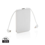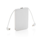 Компактна и плоска външна батерия от 5000 mAh, изработена от ABS, която лесно можете да вземете със себе си, където и да отидете. С интегрираните TPE кабели 3 в 1 захранващата банка е съвместима с всички мобилни устройства на пазара и директно готова за употреба. Когато е напълно зареден, той ще ви осигури достатъчно енергия, за да презаредите мобилния си телефон до два пъти. Powerbank съдържа дълготрайна литиево-полимерна батерия с висока плътност клас A 5000 mAh. Индикаторите за захранване ще показват нивото на оставащата енергия, така че винаги да знаете кога да презаредите. Вход: 5V/2A Изход 5V/2A.