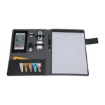 Конферентна папка А4 с различни отделения и халки, джоб за мобилен телефон, бележник (20 редовани страници) и магнитно закопчаване.