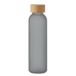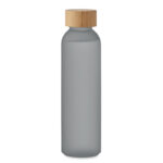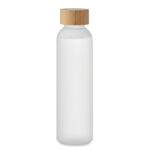 Стъклена бутилка с матирано покритие и бамбуков капак. Без течове. Вместимост: 500 мл. Бамбукът е естествен продукт, възможно е да има леки вариации в цвета и размера на артикул, което може да повлияе на крайния резултат от декорацията.