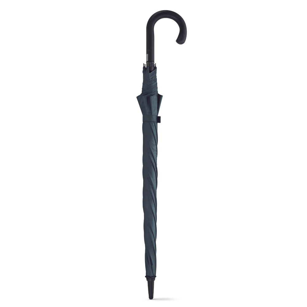 Чадър Pongee 190T с вал и ребра от фибростъкло и дръжка с гумено покритие. Този чадър е устойчив на вятър и има автоматично отваряне. ø1030 x 890 мм