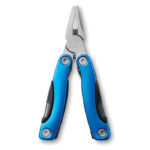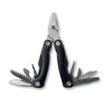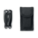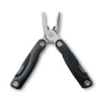 Сгъваем мултифункционален инструмент от неръждаема стомана с клещи от неръждаема стомана. 9 функции на инструмента. Включена е 600D полиестерна торбичка.