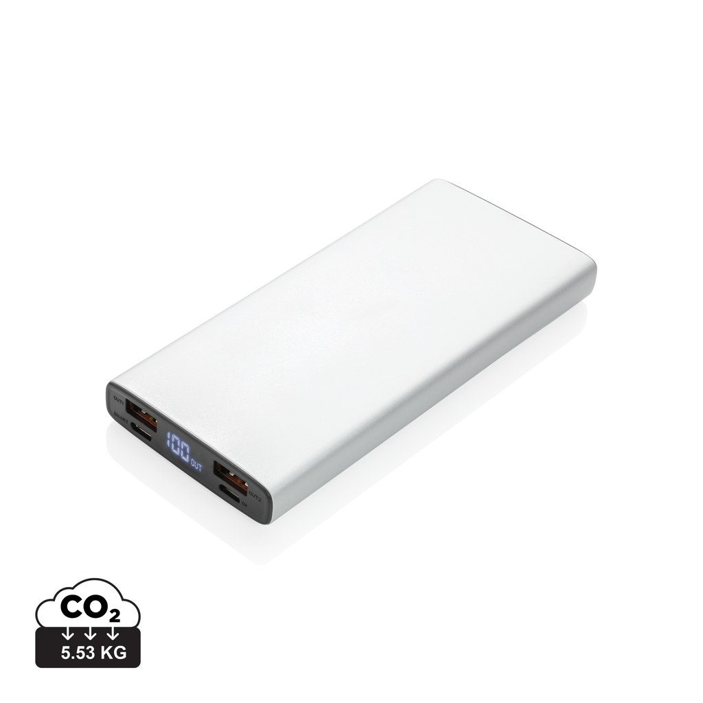 Зареждайте всичките си мобилни устройства с възможно най-бързата скорост на зареждане. Тази алуминиева 18W PD звъншна батерия се предлага с ултра бърз изход тип C и QC 3.0 USB A изход. Артикулът има литиево-полимерна батерия от 10000 mah A, за да зарежда вашето устройство до 5 пъти. Със светлинен индикатор за батерията, показващ оставащото ниво на енергия. Micro USB вход 5V/2A; Тип-C вход 5V/3A, 9V/2A, 12V/1.5A; USB изход 5V/2.1A; QC 3.0 изход 5V/3A,9V/2A,12V/1.5A; Тип-C изход 5V/3A,9V/2A,12V/1.5A 18W макс.(PD 3.0);USB-A изход: 5V/3A,9V/2A,12V/1.5A 18W макс.(PD 3.0) Включително TPE без PVC материал микро кабел за зареждане.