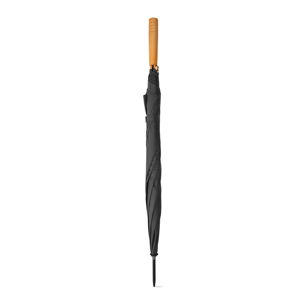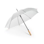 rPET pongee чадър с автоматично отваряне, метална дръжка и рамка и дървена дръжка. ø1050 x 850 мм