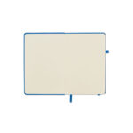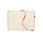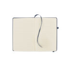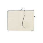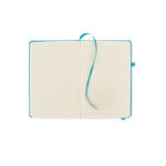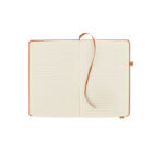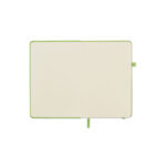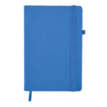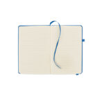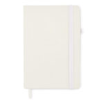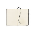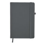 Тефтер A5 с рециклирана PU корица. Съдържа 192 страници от рециклирана хартия (96 листа). Подходящ вертикален ластик за затваряне и текстилна лента и държач за химикал.