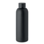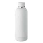 Двустенна изолираща вакуумна бутилка от рециклирана неръждаема стомана (90% рециклирана неръждаема стомана и 10% неръждаема стомана). Вместимост 500 мл. Без течове.