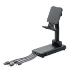 Външна батерия 10000 mAh от ABS с разтегателен и сгъваем държач за телефон. Интегрирани мулти кабели. Изход: DC 5V/2A.