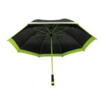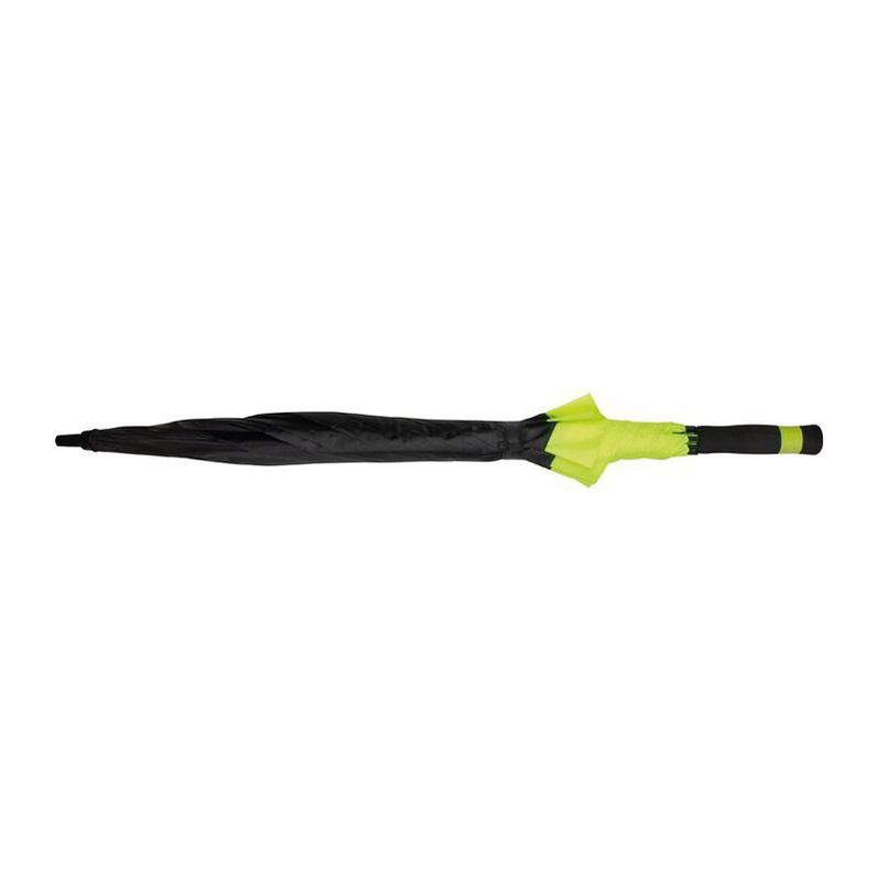 Голям чадър, изработен от 190T полиестер, който ще привлече вниманието към себе си и вашата реклама благодарение на черно-неоновия си цветови контраст.