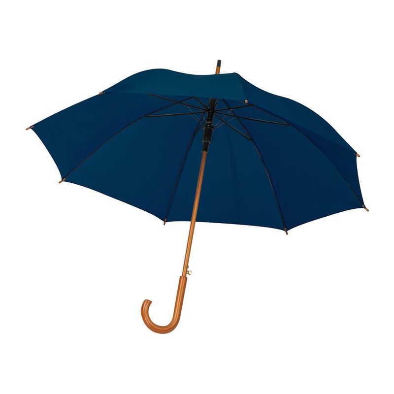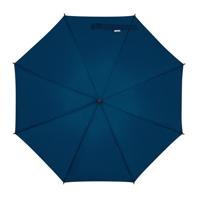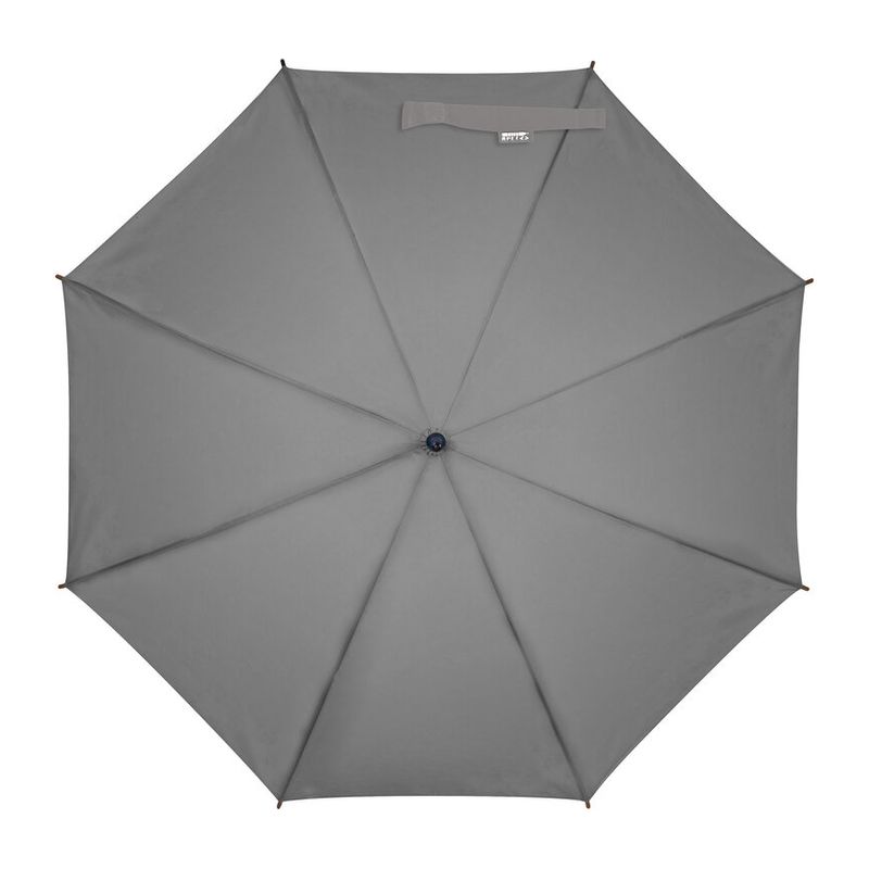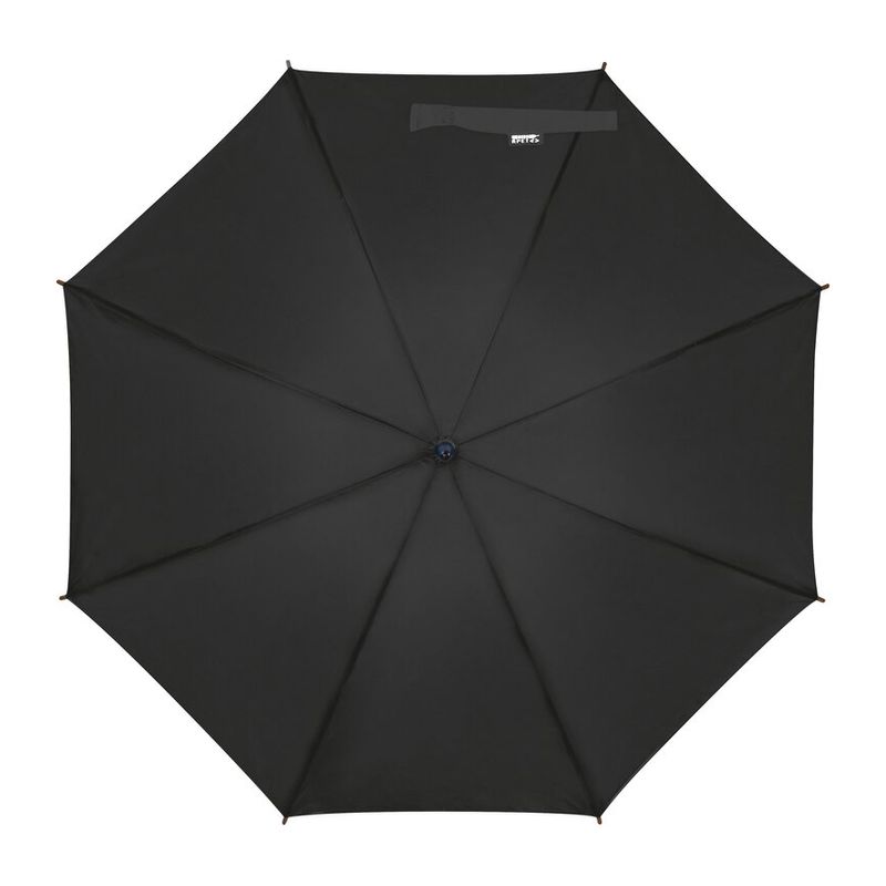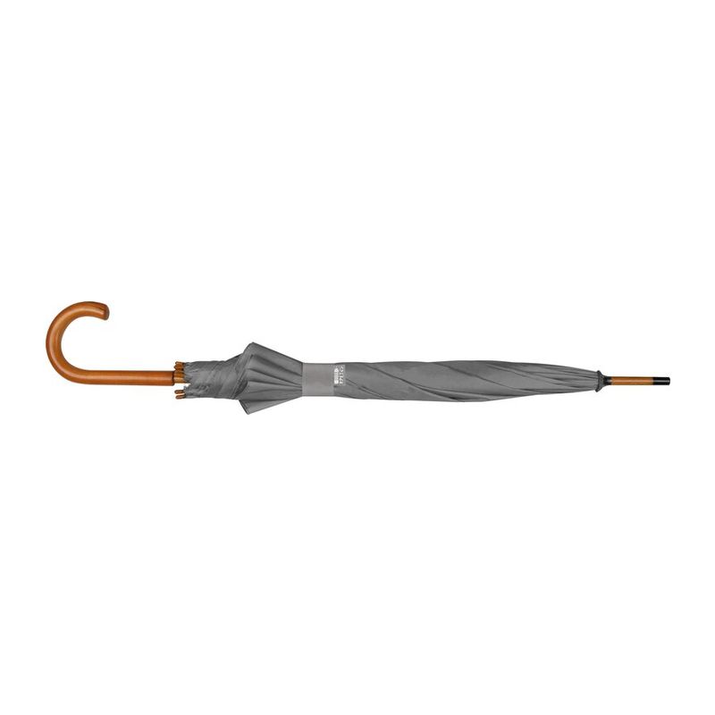 Висококачествен автоматичен и ветроустойчив чадър с дръжка от фибростъкло и извита дървена дръжка. Изработен от рециклирани материали.