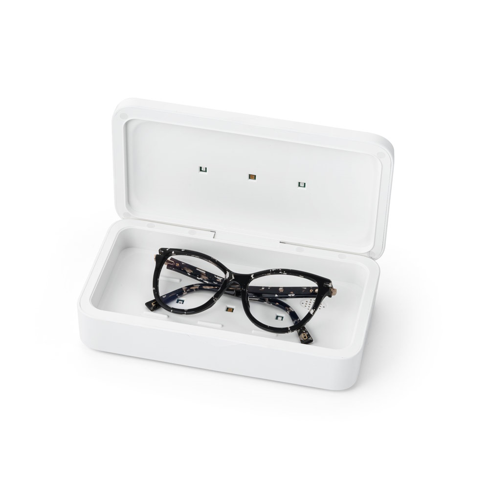 Кутия стерилизатор от ABS и PC с комбинация от UVC и UVA лъчение, което позволява елиминиране на широк спектър от бактерии. Кутията има 2 UV светодиода с обща мощност 2W и е специално проектирана за елиминиране на бактерии от ежедневни предмети, като: ключове, телефони, смартфони, маски, очила, дистанционни управления, бижута и други малки предмети. Ефективност от 70% само с 1 цикъл от 5 минути и 99.9% с два цикъла от 5 минути. Той има сензор за безопасност, който изключва лампите веднага щом се отвори кутията. Горната част на кутията включва бързо безжично зарядно устройство (10W), с 5V/3A вход и USB С порт за зареждане. Включва 1 м кабел. Доставя се в подаръчна кутия. 210 х 120 х 55 мм | Интериор: 190 x 95 x 20 мм | Кутия: 240 x 130 x 71 мм