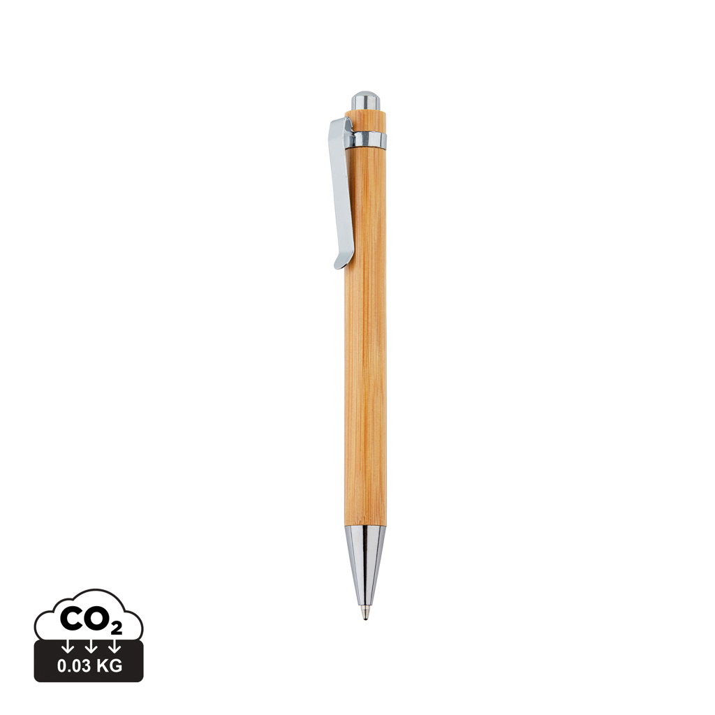 Бамбукова химикалка с метален пръстен и клипс.