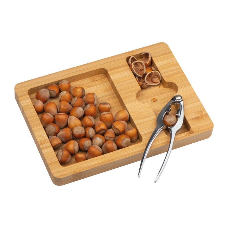 Това е комплект, състоящ се от бамбукова дъска/купа с отделение за ядки и метална лешникотрошачка.
