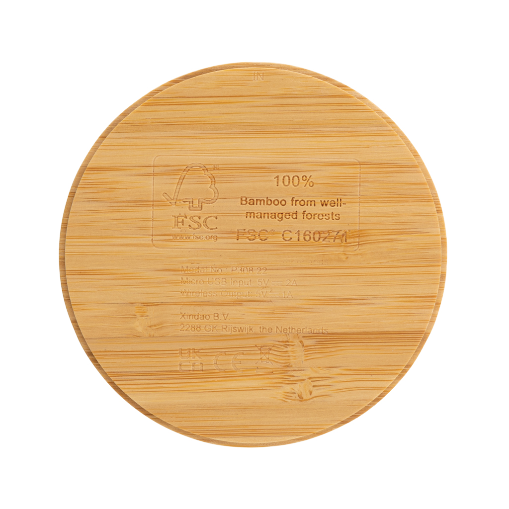 Зареждайте мобилните си устройства, без да свързвате кабел с това 100% FSC® сертифицирано 5W безжично зарядно устройство. Просто поставете мобилния си телефон върху подложката и изчакайте да се появи известието за зареждане. Съвместим с всички устройства, поддържащи QI, като последно поколение Android, iPhone 8 и по-нови. Вход: 5V/2A. Безжичен изход: 5V/1A. Включва 150 cm RCS рециклиран TPE micro USB кабел. Артикул и аксесоари 100% без PVC. Опакован в опаковка FSC®mix.