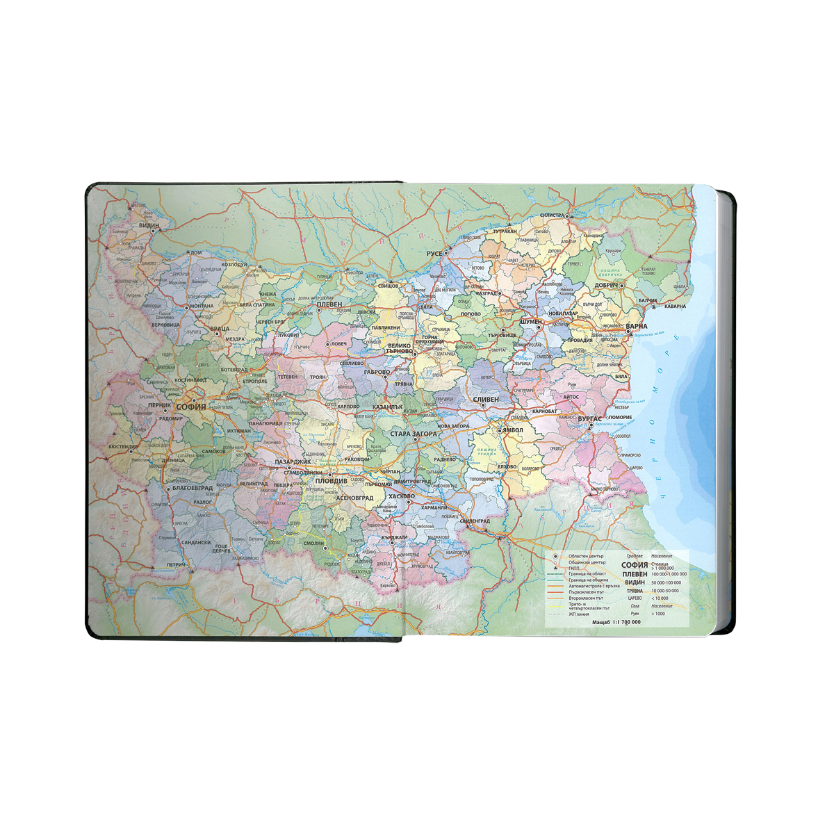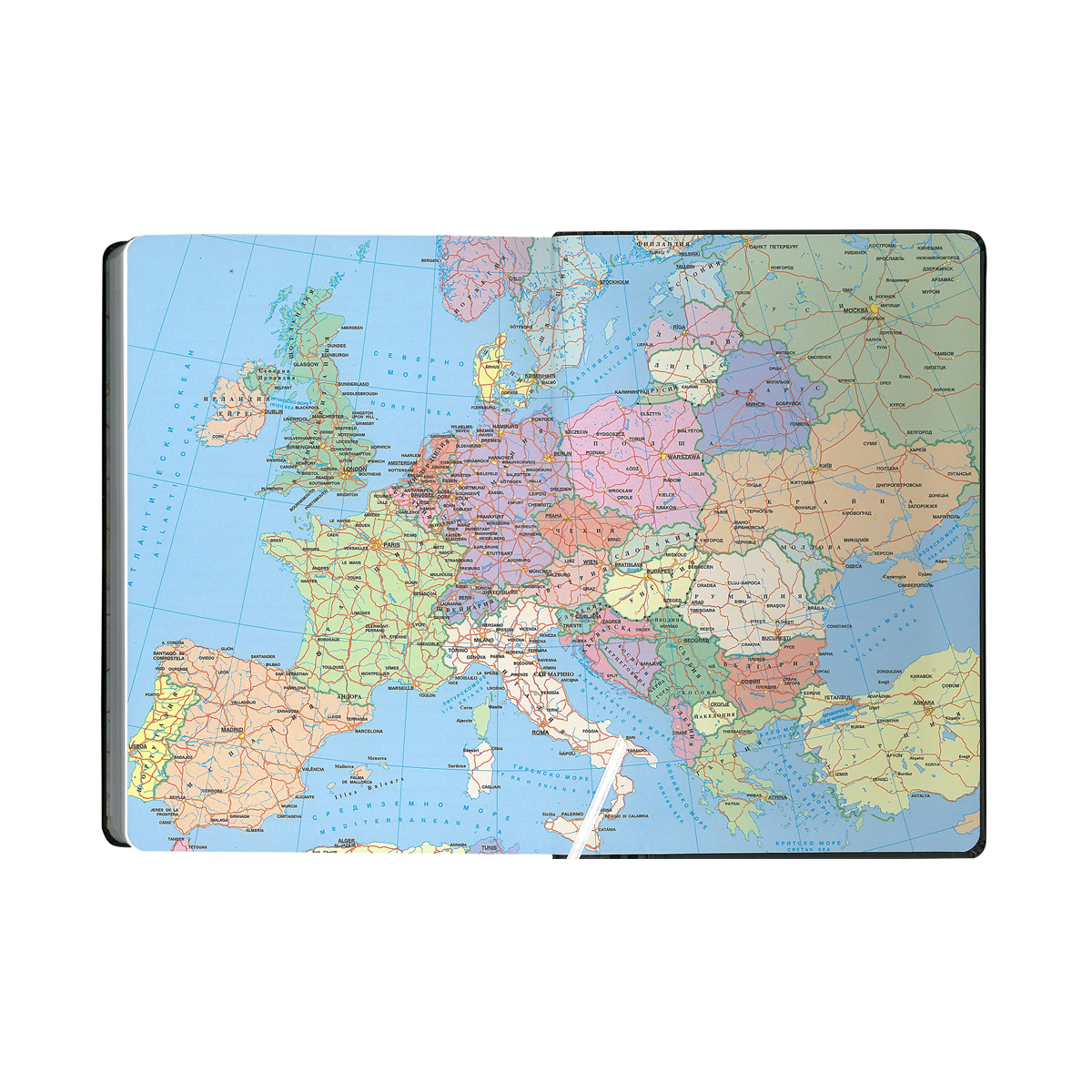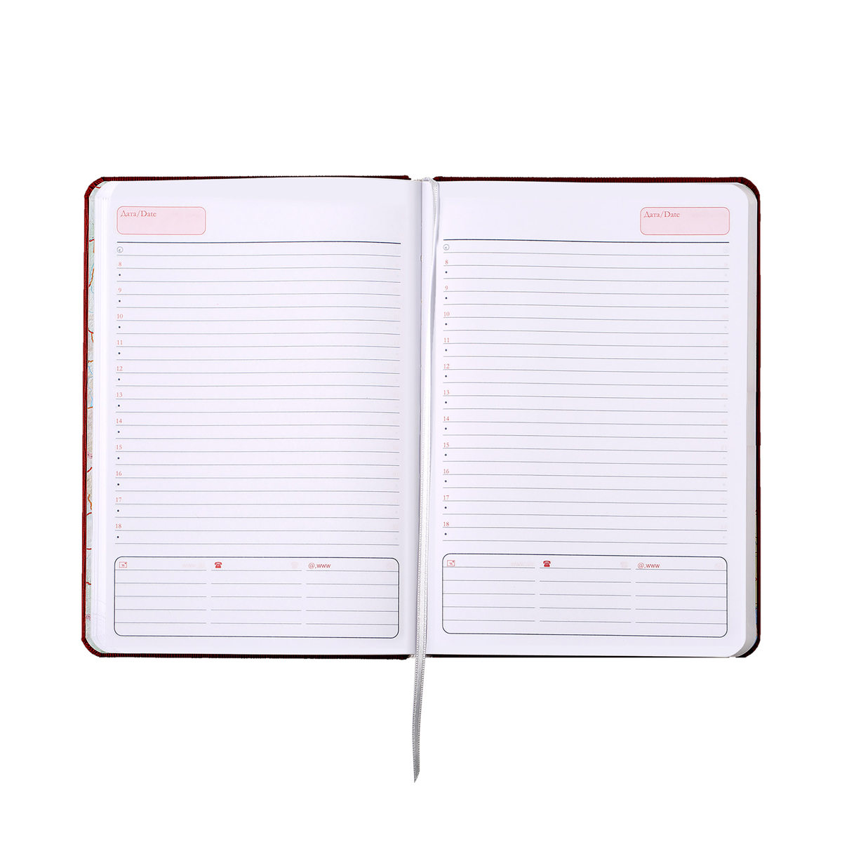 Тяло хартия жълт офсет – 352 стр. двуцветен печат, пет езика, 16 стр. полезна информация, текстилна лента за отбелязване.