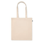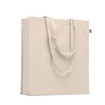 Пазарска торба от органичен памук с дълги дръжки и разширяваща се долна част.