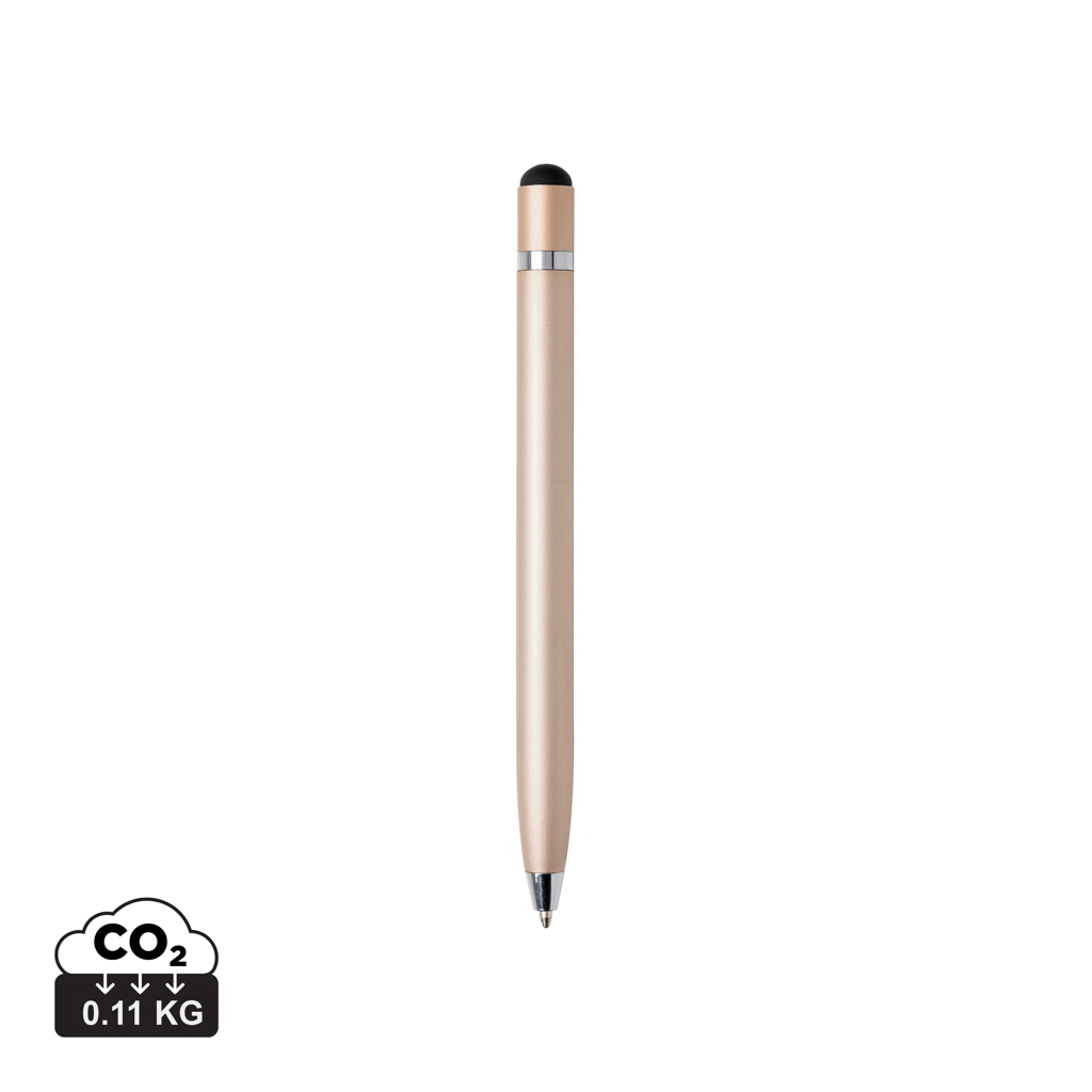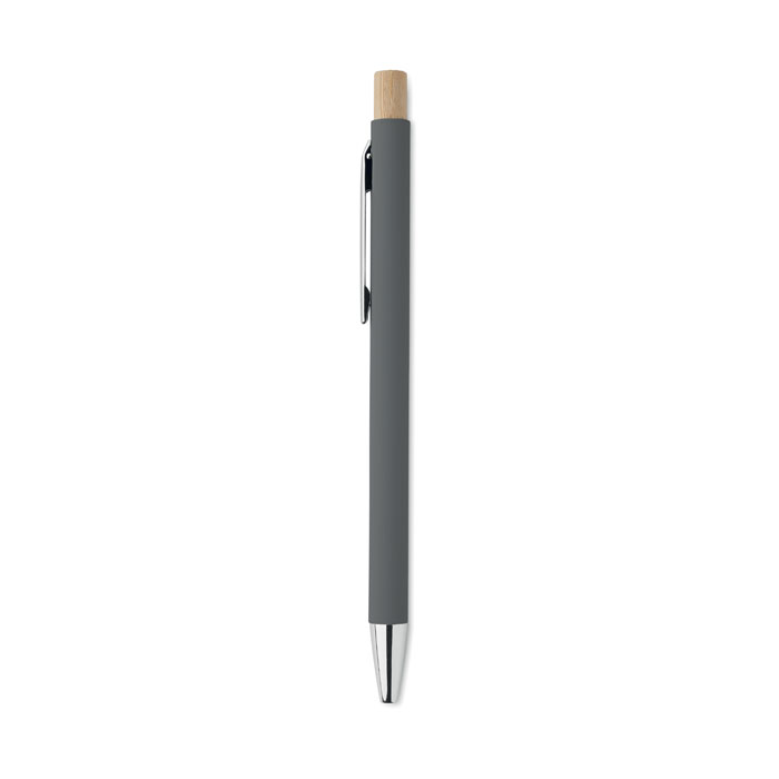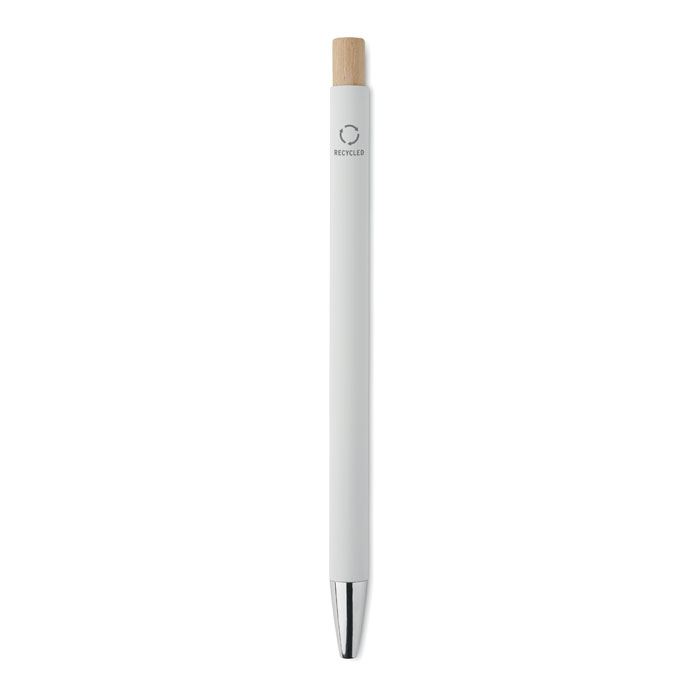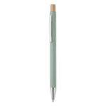 Рециклирана алуминиева химикалка. Сребърен връх и клипс. Синьо мастило.