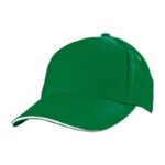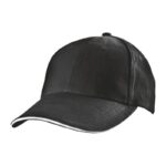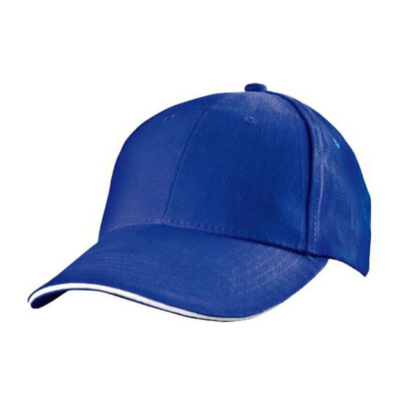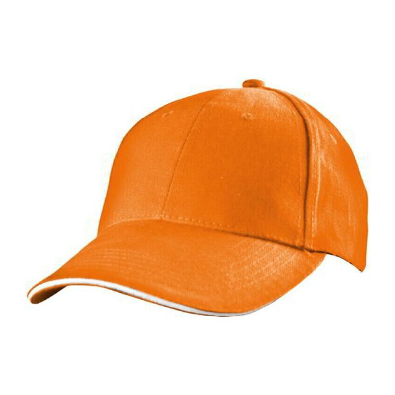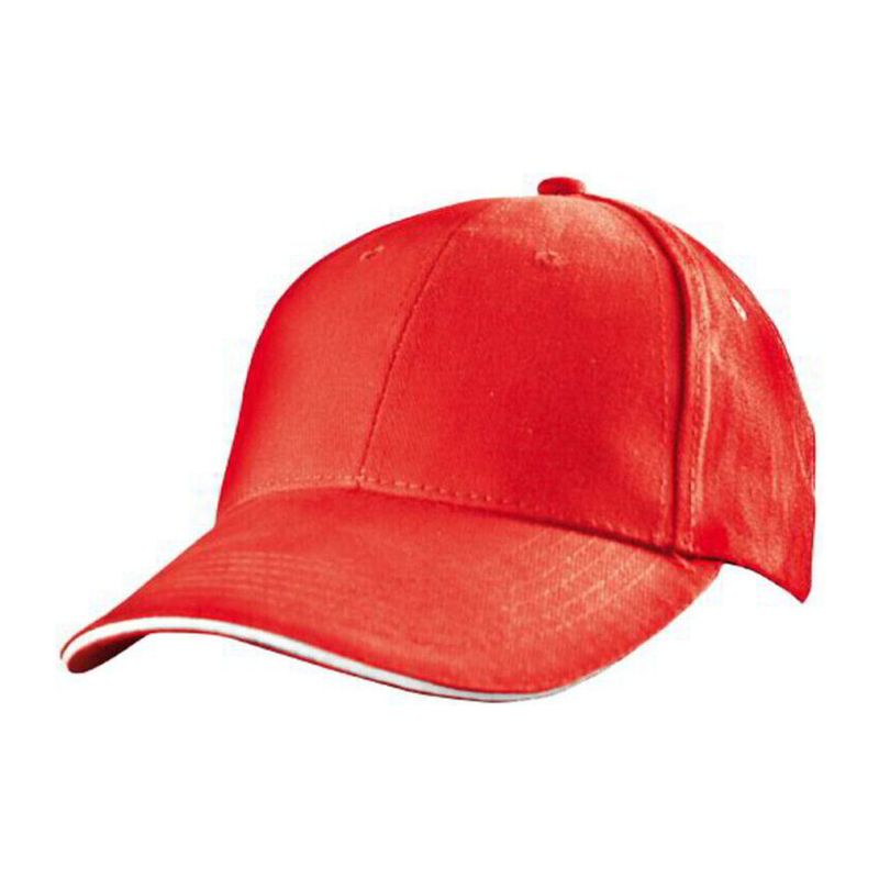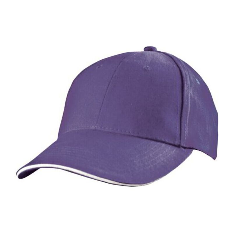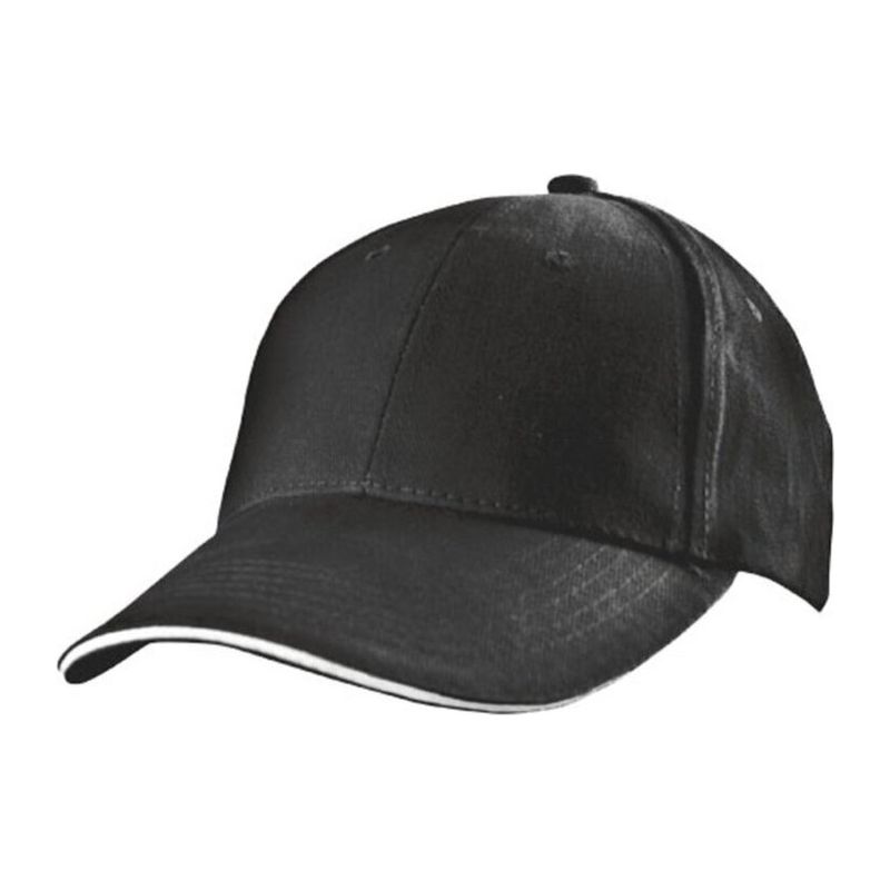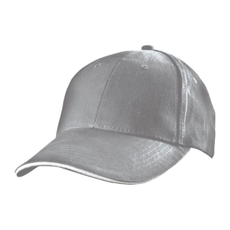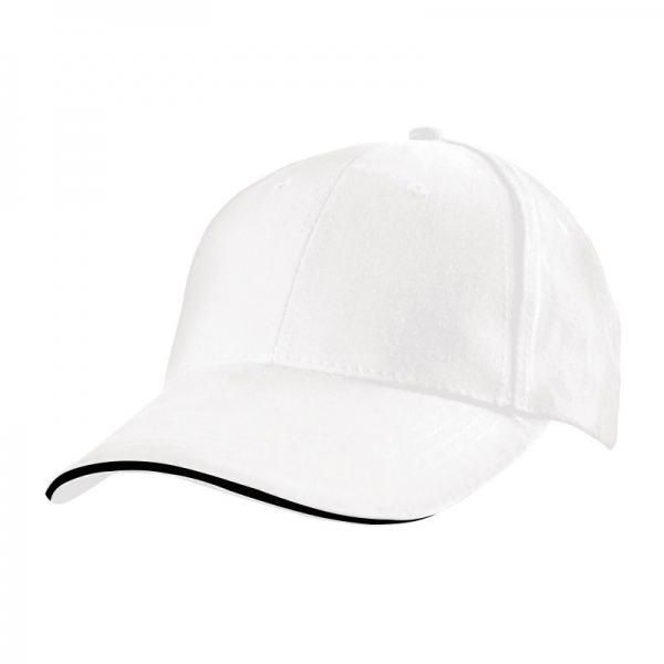 Спортен и модерен! Бейзболна шапка тип сандвич с 6 панела, изработена от плътен полиран памук с матово сребристо метално затваряне с щракване. Сандвич шапката идва с бяла ивица в средата на козирката. Тази шапка е много модерна и се предлага от висококачествен плътен памук.