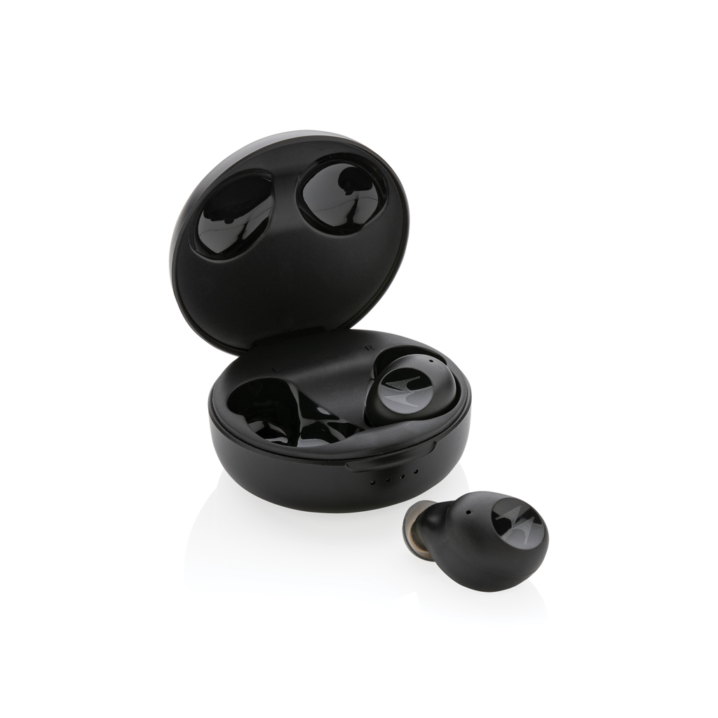Изключителна свобода, когато слушате музиката си от мобилното си устройство. Тези TWS слушалки се доставят в кутия за безжично зареждане от 300 mAh с допълнителна опция за добавяне на лого, което ще свети, когато кутията се зарежда. Слушалките се презареждат за 1,5 часа и имат време за възпроизвеждане до 3 часа. BT 5.0 за автоматично сдвояване с вашето мобилно устройство и сдвояване на слушалките заедно. Работно разстояние до 10 метра. Включително без PVC TPE micro usb кабел за презареждане на кутията за зареждане. С функция за вдигане за отговаряне на повиквания. Включва 3 размера накрайници за уши, подходящи за всички.