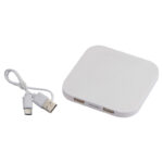 Пластмасово безжично зарядно с 2 USB порта, включен кабел за зареждане. Зарежда всички смартфони с QI.