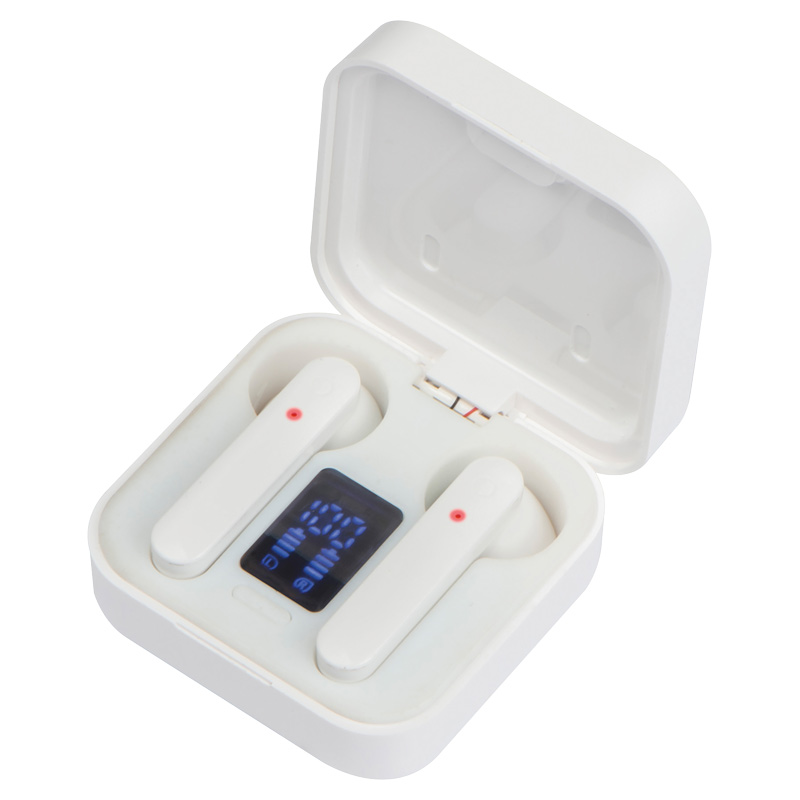 Bluetooth слушалки за поставяне в ушите със соларна функция. Калъфът за зареждане може да се зарежда от слънчева светлина и също така има индикатор за зареждане.