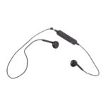 Пластмасови Bluetooth слушалки с контрол на звука. Включен е USB кабел за зареждане.