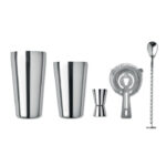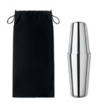 Коктейлен комплект от неръждаема стомана с 750 ml шейкър, мерителна кана (30 ml) и цедка в памучна торбичка.