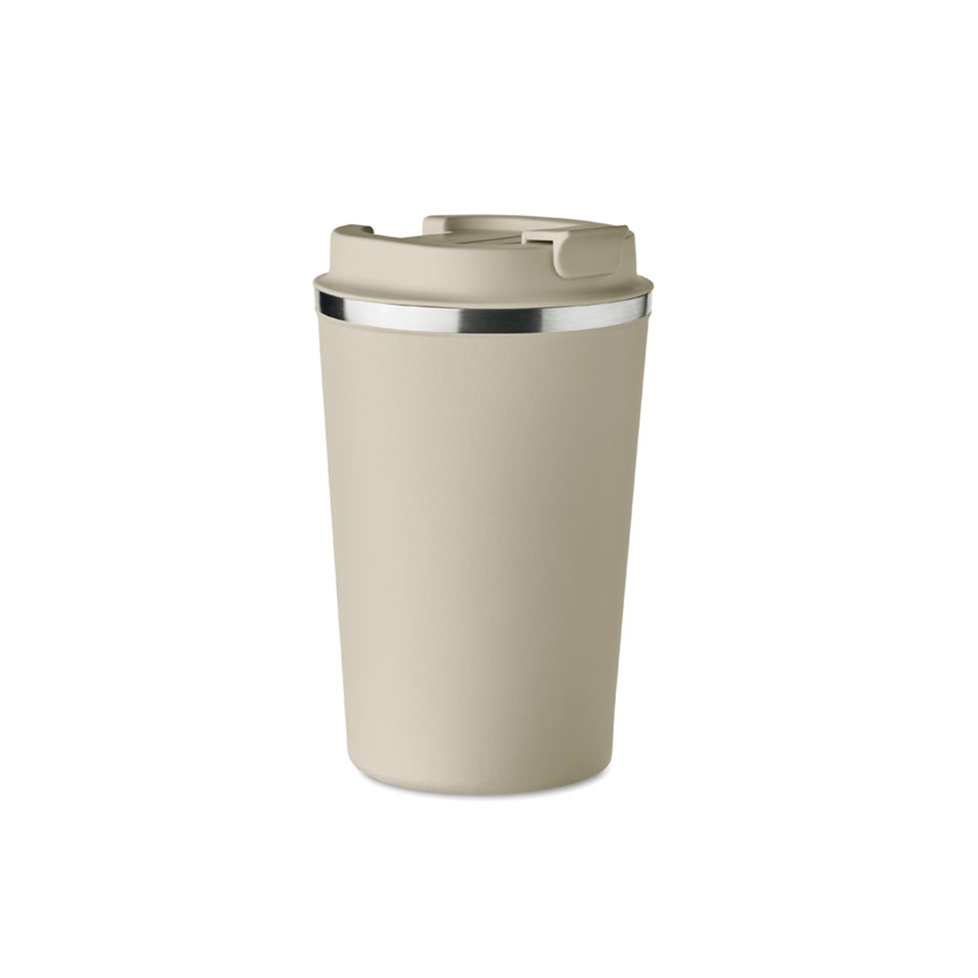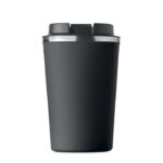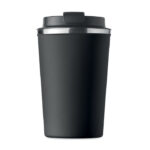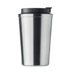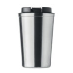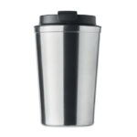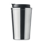 Двустенна чаша от неръждаема стомана с PP капак. Вместимост: 350 мл. Без течове.