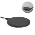 Безжично зарядно от ABS с подсветка и гумено покритие. Това зарядно устройство има 1 м микро USB кабел, който позволява бързо зареждане. Зарядното устройство има входове 5V/2A и 9V/1’67A и има 10W мощност на зареждане. ø99 x 9 мм | Кабел: 1000 мм
