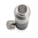 Тази бутилка за вода с капацитет 600 мл се отличава с елегантен двуцветен дизайн. Двустенната вакуумна конструкция от рециклирана неръждаема стомана поддържа напитките охладени до 15 часа или топли до 5 часа. Бутилката пасва на повечето стандартни поставки за чаши в автомобили, което я прави перфектна за употреба в движение. Произведена с рециклирани материали, сертифицирани по RCS (Recycled Claim Standard), което гарантира напълно сертифицирана верига за доставки на рециклирани материали. Без BPA. Включва FSC® сертифицирана подаръчна опаковка от крафт тръба.