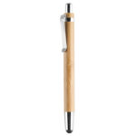 Химикалка с бутон от бамбук със стилус и лъскав хромиран фитинг. Синьо мастило. Бамбукът е естествен продукт, възможно е да има леки вариации в цвета и размера на артикул, което може да повлияе на крайния резултат от декорацията.