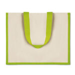 Съчетава еко-приятелски материали като юта и памучна лента, което я прави идеален избор за пазаруване.
