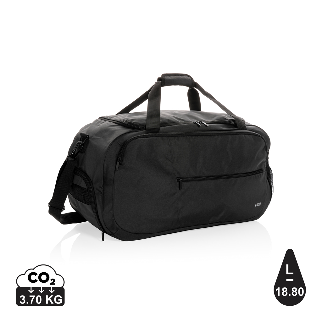Перфектен спътник при пътуване, тази голяма чанта е изработена от супер лек GRS сертифициран полиестер с елегантно PU покритие.