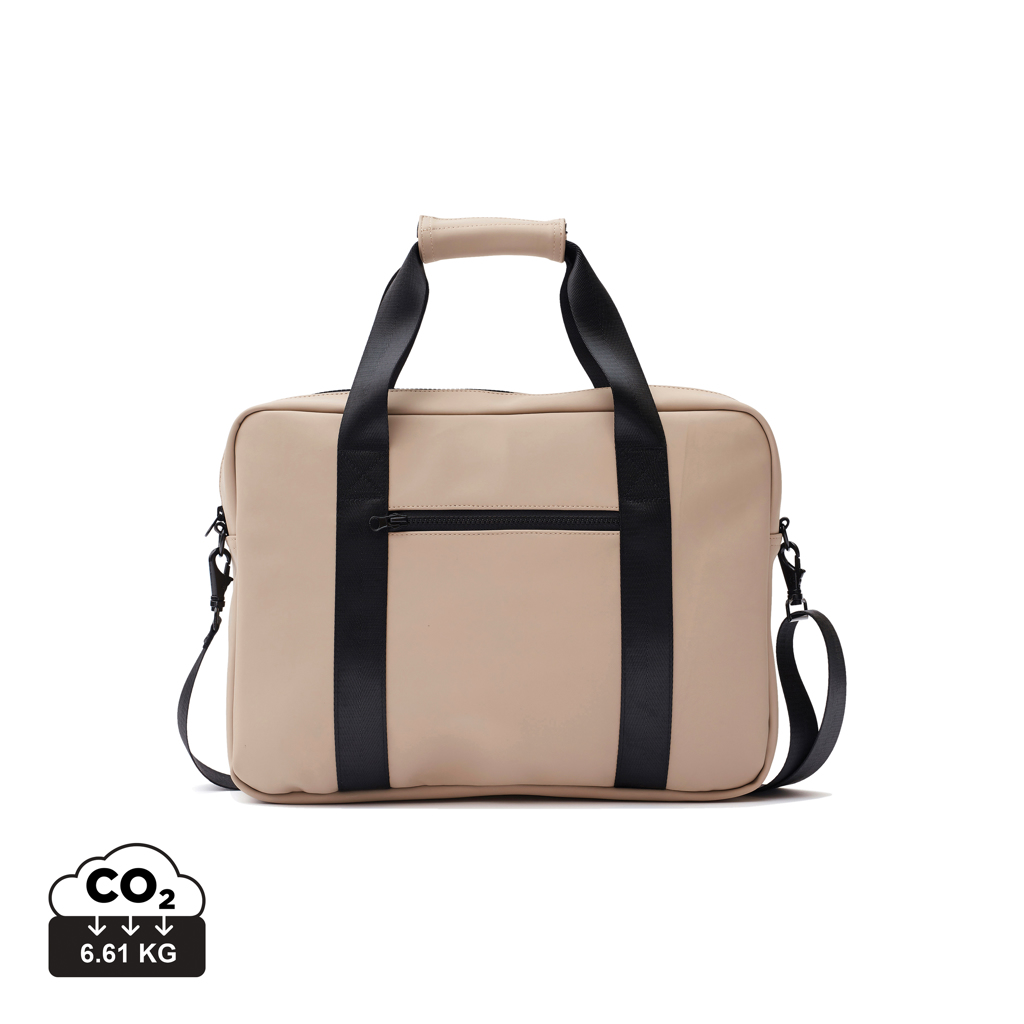 Чанта за компютър с модерен и изчистен дизайн. Функция и форма се обединяват, освен обикновения джоб за компютър, тази чанта има място и за химикалки, документи и други вещи. Чантата е произведена от водоотблъскващ материал, с презрамка и дръжки за носене. Той също така включва прикрепена лента на гърба, така че пасва на вашата количка, когато пътувате.