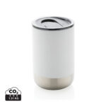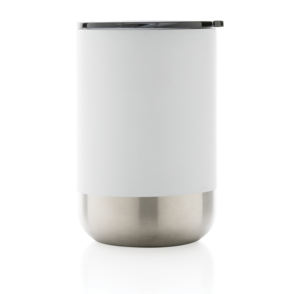 Тази красива чаша има конструкция от рециклирана неръждаема стомана с вакуумна изолация, за да поддържа напитките топли до 3 часа или студени до 6 часа. Модерното му изпълнение с акцент в долната част от неръждаема стомана го прави истински привличащ вниманието. Капакът с плъзгаща се функция за отваряне гарантира изживяване при пиене, устойчиво на разливане. Изработено от сертифицирани рециклирани материали RCS (Recycled Claim Standard). RCS сертификацията гарантира напълно сертифицирана верига за доставки на рециклирани материали. Общо рециклирано съдържание: 76% въз основа на общото тегло на артикула. Без BPA. Вместимост 360мл. Включително FSC®-сертифицирана крафт опаковка.