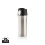 Тази страхотна вакуумна чаша от неръждаема стомана с двойна стена поддържа напитката ви топла до 5 часа или охладена до 15 часа. Капакът се заключва и следователно избягва всякакъв риск от изтичане или разливане. Капакът лесно се поддържа чист за оптимална хигиена и може да се мие в съдомиялна машина. Уникалният дизайн на чашата ви позволява да пиете удобно и безопасно с една ръка директно от чашата. Размерът на чашата е подходящ за поставяне във всяка поставка за напитки в кола. Изработено от сертифицирани рециклирани материали RCS (Recycled Claim Standard). RCS сертификацията гарантира напълно сертифицирана верига за доставки на рециклирани материали. Общо рециклирано съдържание: 71% въз основа на общото тегло на артикула. Без BPA. Вместимост 300мл. Включително FSC®-сертифицирана крафт опаковка.