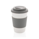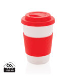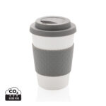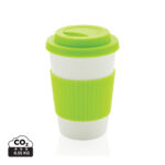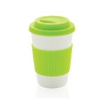 Спрете еднократната употреба! Донесете своя собствена чаша и се присъединете към революцията на повторната употреба, за да можете да допринесете за един свободен свят за еднократна употреба. Тези леки и издръжливи чаши са идеално подходящи да вземете кафето си в движение. Тези чаши са за многократна употреба и са изработени от 100% рециклируем PP материал. 100 градуса по Целзий, одобрени за безопасност на храните. Със силиконов капак и ръкав. Подходящ за съдомиялна машина и микровълнова фурна. Пасва удобно под повечето кафемашини. Съдържание: 270мл.