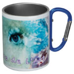 Чаша за пиене от неръждаема стомана с цветен алуминиев карабинер и вместимост 300 мл.