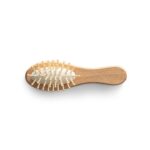 Четка за коса с ергономична дървена дръжка и бамбукови игли, които нежно масажират скалпа и предотвратяват накъсването на косата. Перфектна за пътуване.