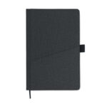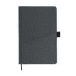 Бележник A5 с твърда PU корица и преден джоб за телефон. Калъф подвързан. 160 страници с рециклирана хартия (80 листа). Съответстваща отметка на лента.