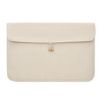 15-инчова подплатена чанта за лаптоп от памук 220 gr/m². Вътрешна подплата 120 gr/m². Закопчаване с бамбуково копче.