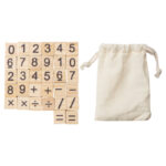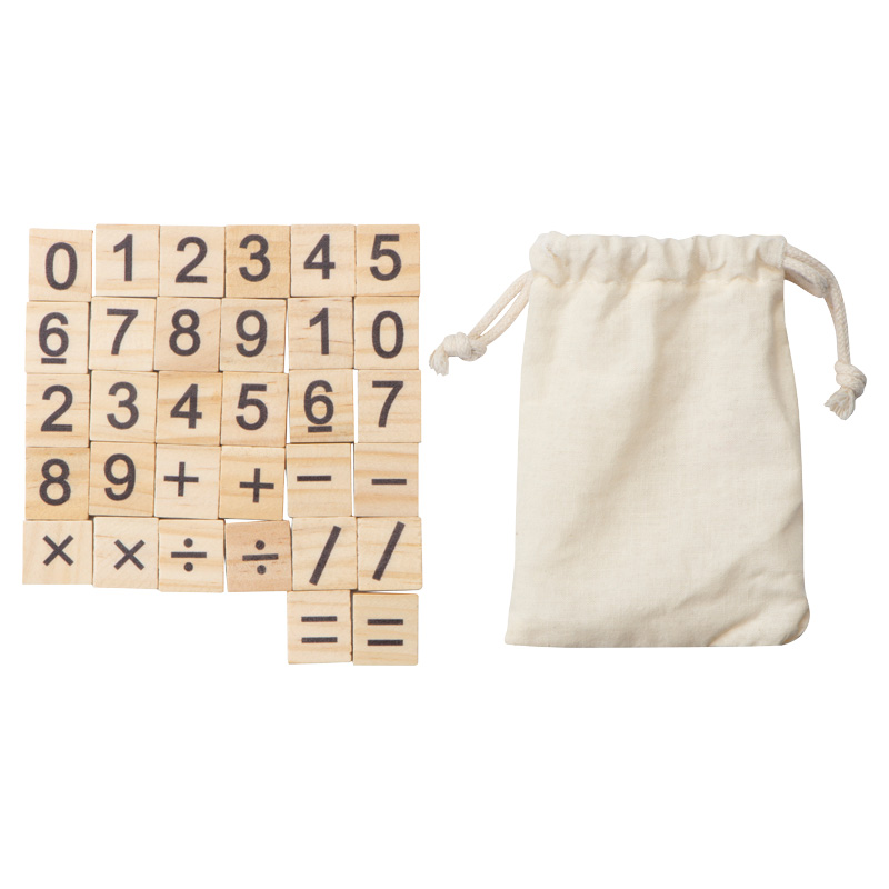 Този комплект за смятане съдържа 32 дървени елемента с гравирани цифри и математически знаци. Всеки елемент е изработен от екологично дърво, което е здраво и безопасно за употреба. Комплектът идва в удобна памучна торбичка с връзка, което улеснява съхранението и пренасянето.