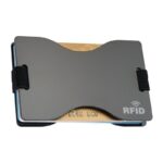 Алуминиев държач за карти с RFID защита срещу неоторизирано четене на кредитни карти, банкови карти, лични карти и други.