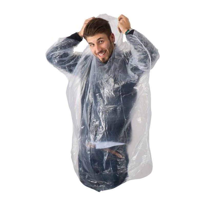 Дъждобран, сгънат в опаковка с размер на кредитна карта, идеално за всеки портфейл.