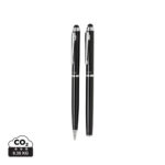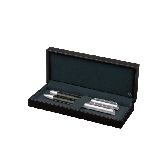 Подаръчен комплект химикалка и стилус ролер. Изключителен дизайн с красива шарка на цилиндър и специално място за отпечатване на вашата декорация. вкл. Подаръчна туба Swiss Peak.