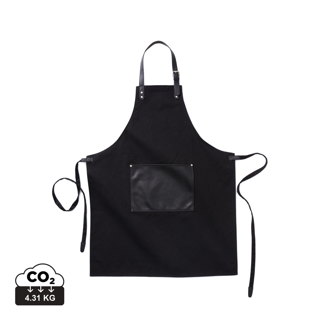 Регулируема кухненска престилка с 3 предни джоба от 240 gr/m² деним с памучни презрамки. Предлага се в индивидуална кутия.