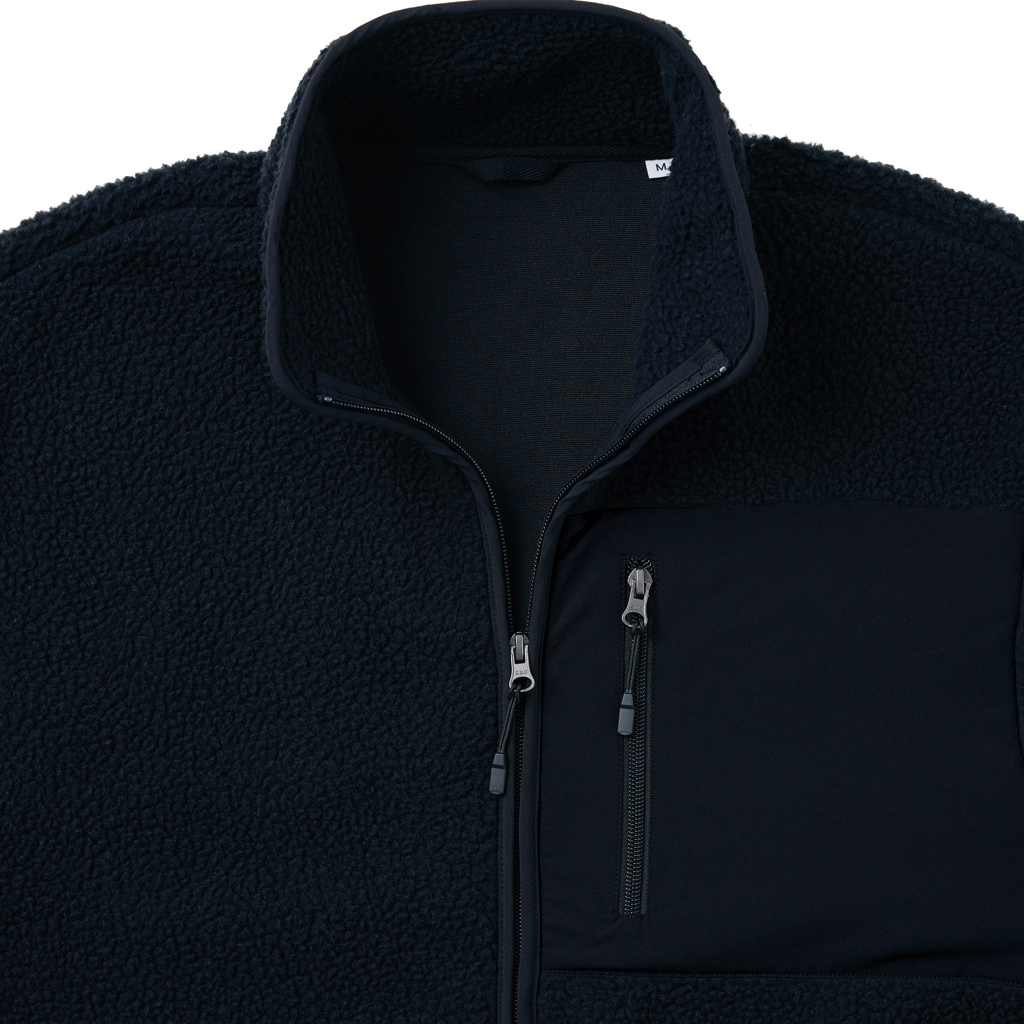 Унисекс вълнено яке с цип, изработено от 100% рециклиран полиестер с плътност 320 g/m². Това стилно и елегантно яке е перфектното допълнение към вашия гардероб. Якето има изчистен външен вид с меко трико отвътре. На гърдите е разположен джоб с цип, който предлага подходящо място за персонализиране. Всички ципове са с допълнителни устройства за изтегляне в съответния цвят, което придава изтънчен вид. Якето използва рециклирани и органични материали, а въздействието му върху околната среда се проследява с технологията AWARE™, която е базирана на физическо проследяване и блокчейн. Сканирайте QR кода, за да получите достъп до цифровия паспорт на продукта. 2% от приходите от всяка продажба ще бъдат дарени на Water.org. Продуктът е сертифициран по OEKO-TEX® STANDARD 100.