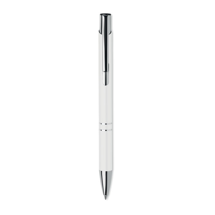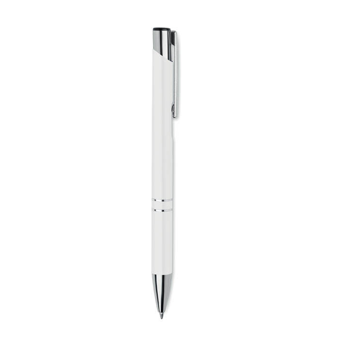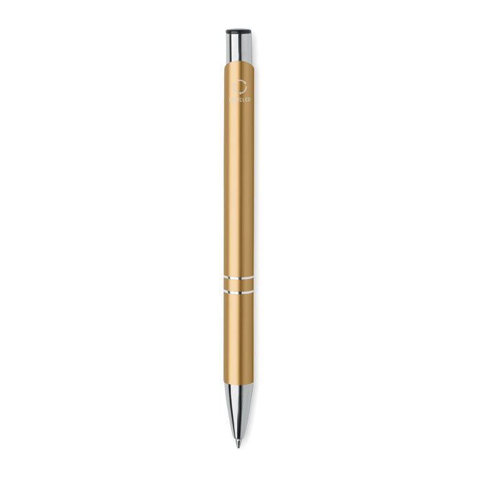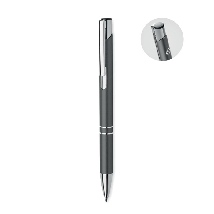 Химикалка с бутон от рециклиран алуминий. Синьо мастило.